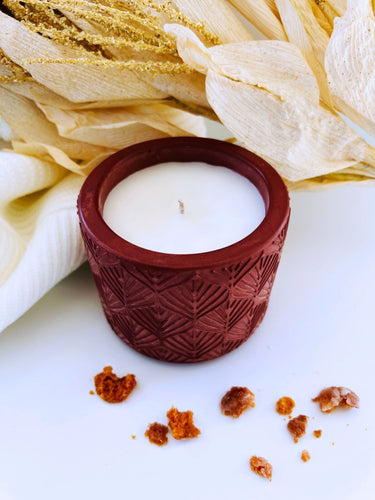 Apple Cider Donut seduces your senses with its aroma of freshly-fried donut rings delicately scented with the notes of warm apple cider, sprinkled with a dusting of sugar. Housed in a handmade cement container with Brown & Red tones.
